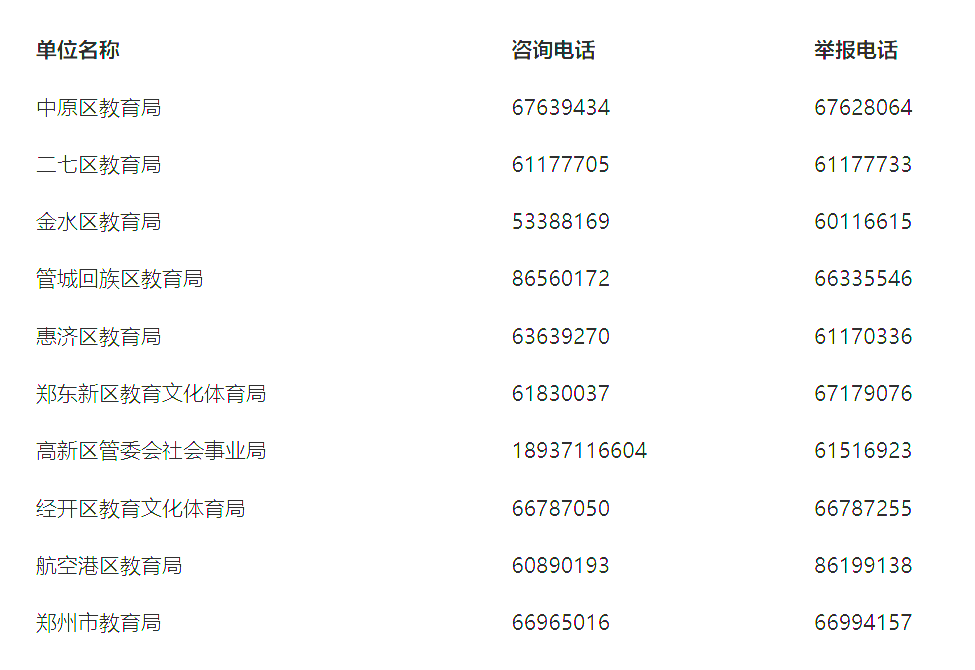 【提醒】有问题可拨打郑州市区招生咨询、举报电话