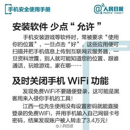 江苏扬州一市民的银行卡在不到2天的时间内,竟交易69笔,6万元钱不翼而飞,警方发现,这可能跟他曾在公共场所连接wifi有关。移动互联网时代,手机正变成我们的记事本、账本、钱包……与之相关的危险也越来越多。