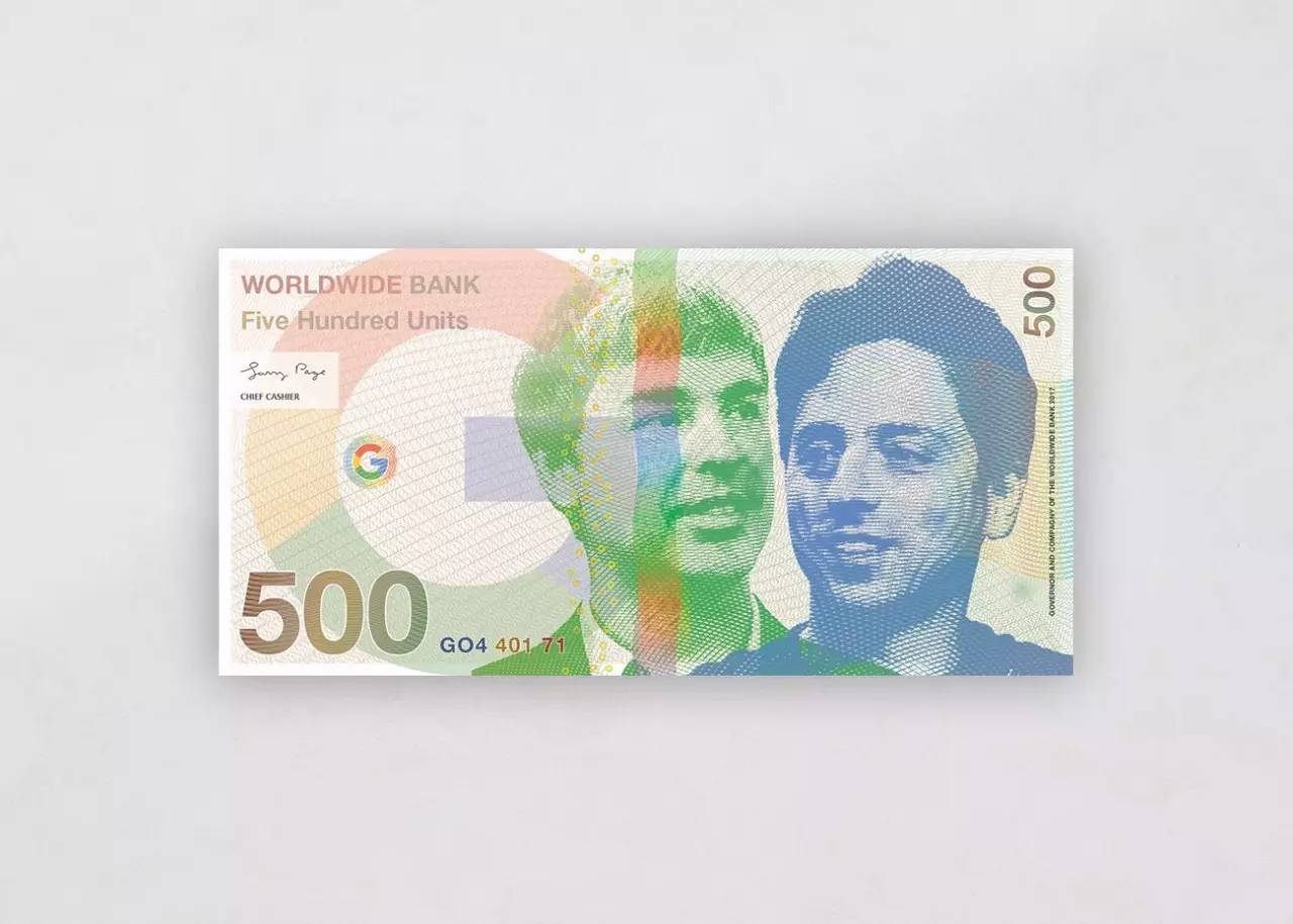 法国设计师 Jade Dalloul 就设计了这样一套以知名企业为主题的纸币,有墨绿色的星巴克、蓝色的 Facebook、多彩的 Google 等等,不仅颜色有讲究,防伪纹、冠字号、印在背面的企业愿景一个都不少。
