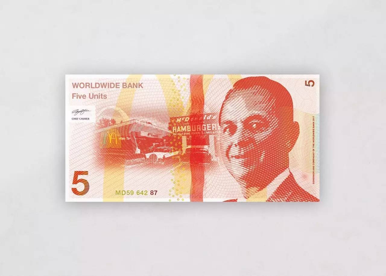 试想一下:如果 5 元面值的钞票印着麦当劳的汉堡;如果 10 元面值的钞票印着比尔盖茨的微笑;如果 50 元面值的钞票印着新建的苹果公园……