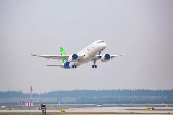 国产大飞机C919从上海浦东机场成功起飞。 澎湃新闻记者 是冬冬 图 …